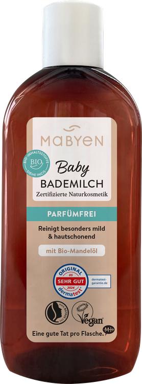 Mabyen Baby Bath Milk er et specialudviklet badetilskud, der giver en skånsom og hudvenlig rensning af babyers følsomme hud. Denne cremede badezusætning er beriget med økologisk mandelolie af høj kvalitet og giver intensiv pleje, der forhindrer huden i at tørre ud og holder den smidig og blød. Den parfumefri formel er baseret på særligt milde, plantebaserede rensestoffer og er dermatologisk testet, hvilket gør den ideel til daglig babypleje. Stol på den certificerede naturkosmetik fra Mabyen, og giv din baby det bedste til en skånsom badeoplevelse.