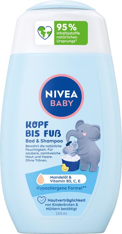 Nivea BABY Head to Toe Bath & Shampoo giver en skånsom og mild rensning af din babys sarte hud og følsomme hår. Beriget med 100 % naturlig mandelolie og værdifulde vitaminer B5, C og E sikrer den ikke kun en grundig rensning, men beskytter også mod udtørring. Den allergivenlige formel er specielt udviklet til babyers behov og er blevet testet af børnelæger og mødre for hudkompatibilitet. Det unikke SleepEssence™-duftkompleks hjælper med at få din baby til at slappe af og forbereder den blidt på at sove. Den veganske og biologisk nedbrydelige formel er fri for animalske ingredienser, mikroplast, mineralolie og parabener, så du kan føle dig helt sikker, når du plejer din lille. Oplev et afslappende aftenritual uden tårer med Nivea BABY.
