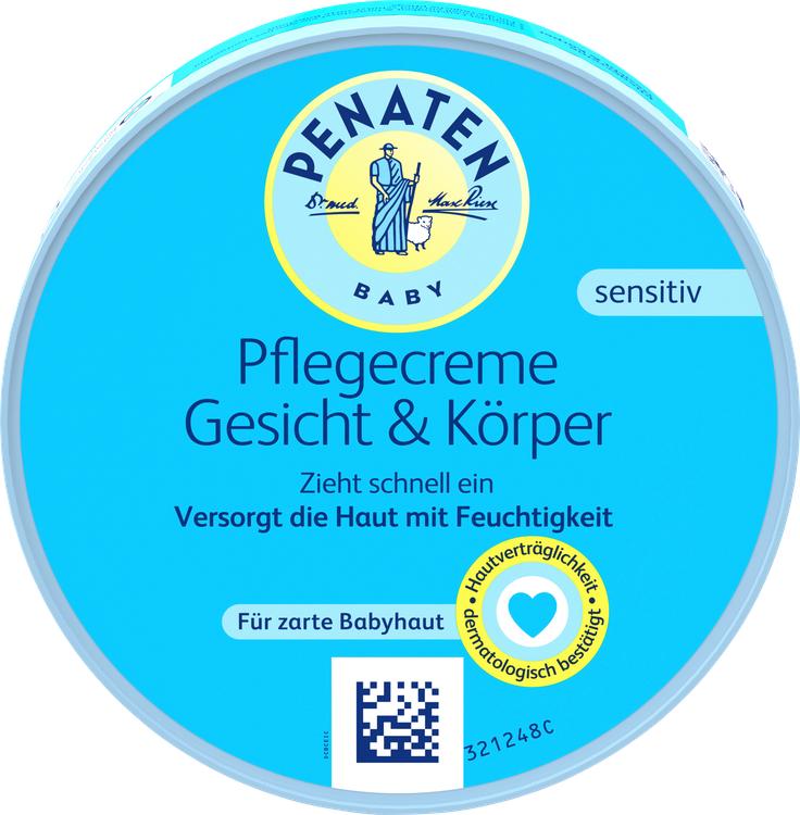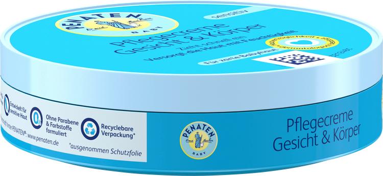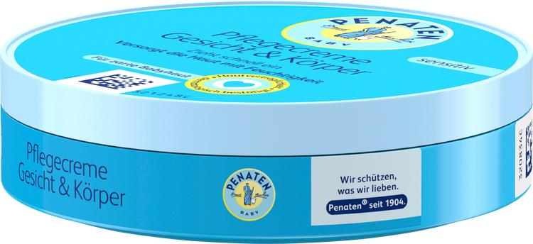 Penaten Baby Care Cream Face & Body er en fugtighedscreme specielt udviklet til nyfødte, som giver optimal pleje til følsom babyhud. Denne hurtigt absorberende creme er ideel til daglig hudpleje og øger hudens fugtindhold. Den duft- og farvefri formel minimerer risikoen for allergi og er ideel til babyers behov. Denne plejecreme er en vigtig del af enhver babys første sæt.