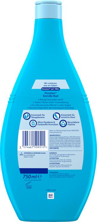 Penaten Baby Chamomile Bath Additive er et specielt udviklet badeadditiv til nyfødte og babyer, der kombinerer skånsom rensning og pleje i ét. Med naturligt kamilleekstrakt giver det en mild og beroligende badeoplevelse, der passer perfekt til babyens følsomme hud. Formuleringen 'no more tears' sikrer, at produktet er lige så mildt som rent vand og derfor skånsomt mod babys øjne. Badeadditivet er dermatologisk testet og har en høj hudkompatibilitet og er ideelt til følsomme hudtyper. Badezusatzet er også fri for parabener og farvestoffer, hvilket gør det til et fremragende valg til skånsom og beroligende babypleje.