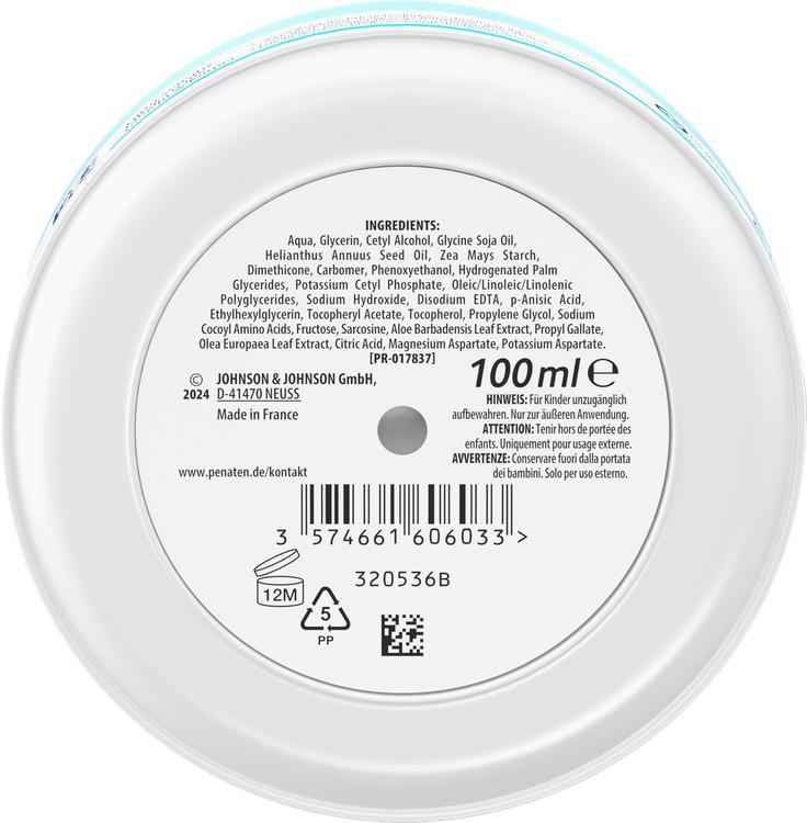 Penaten Ultra Sensitive Care Cream til ansigt og krop er specielt udviklet til den sarte hud hos nyfødte babyer. Denne duft- og farvefri creme er ideel til daglig pleje og øger fugtindholdet i følsom babyhud. Den skånsomme formel er perfekt tilpasset babyers behov og minimerer risikoen for allergi. Denne plejecreme er en vigtig del af babys første sæt og giver beroligende pleje, der beskytter og plejer huden.
