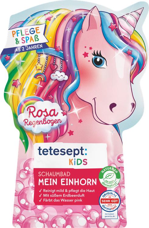 Tetesept KIDS-boblebadet "My unicorn" er den perfekte badesjov for de små. Med en specielt formuleret formel, der er designet til børns følsomme hud, giver dette boblebad en blid og hudplejende badeoplevelse. Beriget med hudplejende aloe vera og mandelproteiner giver det optimal beskyttelse og pleje. Den frugtagtige jordbærduft og de harmløse farvestoffer, som giver vandet en magisk lyserød farve, gør badet til en dejlig oplevelse. Badevandet pletter ikke hud, hår eller badekarret. Et særligt højdepunkt er den sjove enhjørningeformede fingerdukke, som gør det endnu mere spændende at lege i badet. Skumbadets hudvenlighed er dermatologisk bekræftet, og det er egnet til børn fra 3 år og opefter.