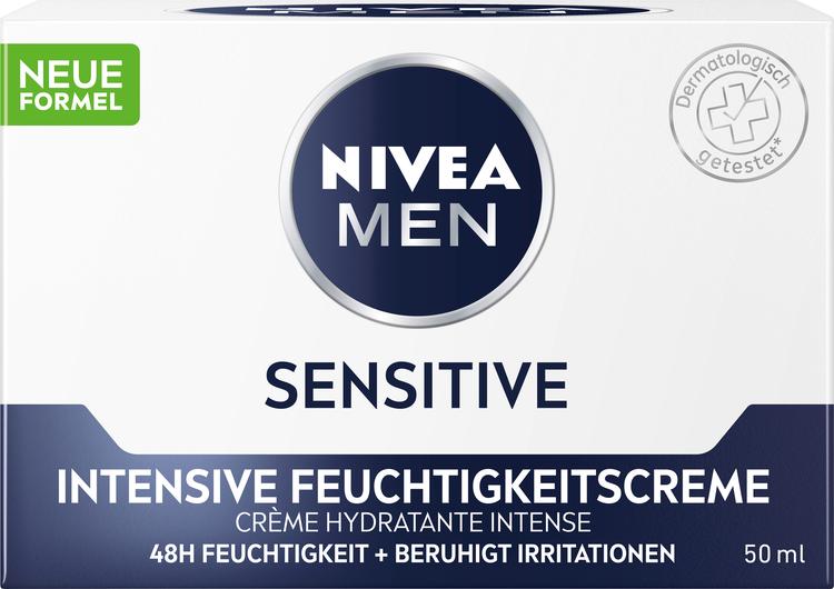 NIVEA MEN Sensitive Intensive Moisturizing Cream er den ideelle pleje til følsom hud. Den giver intensiv fugt i op til 48 timer og lindrer fem tegn på hudirritation som svie, rødme, tørhed, stramhed og kløe. Takket være den særlige formel, som indeholder 0 % alkohol og er beriget med naturlige ingredienser som kamille, troldhassel og E-vitamin, næres og beskyttes huden optimalt. Den lette, ikke-fedtende konsistens gør den behagelig at bruge uden at efterlade ubehagelige rester. Ved regelmæssig brug styrker cremen hudens naturlige barriere og beskytter følsom hud mod skadelige miljøpåvirkninger, så huden føles frisk og revitaliseret hele dagen.