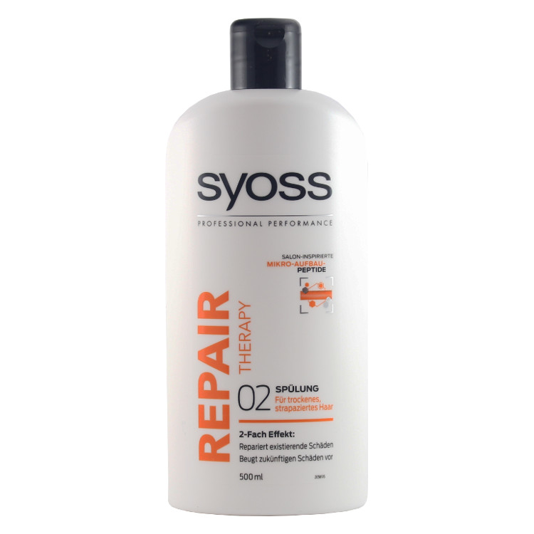 Syoss balsam Repair Therapy giver tørt og beskadiget hår målrettet reparation. Den glatter hårfibre for forbedret kammbarhed, genopbygger håret og styrker det for op til 90 % mindre hårbrud.