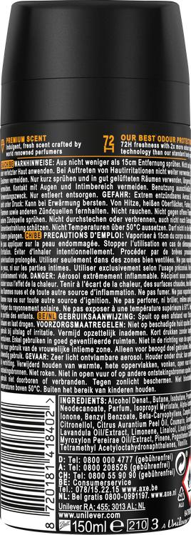 Oplev Axe Black Vanilla Bodyspray, en deodorant af høj kvalitet, der giver dig en forførende duft hele dagen. Denne kropsspray er en del af Axe Fine Fragrance Collection og kombinerer de luksuriøse noter af sort vanilje med friske, frugtagtige appelsinnuancer. Den giver ikke kun en spektakulær duft, men beskytter også pålideligt mod kropslugt - helt uden aluminium. Den innovative, lugtbindende zinkformel sikrer, at duften forbliver intens og langvarig, mens du kan nyde op til 72 timers friskhed. Spray blot på armhulerne og overkroppen, og lad den forførende aura af Axe Black Vanilla Bodyspray omslutte dig. Axe er også engageret i bæredygtighed og har som mål at gøre sin emballage genanvendelig eller fremstillet af genbrugsmateriale inden 2025.