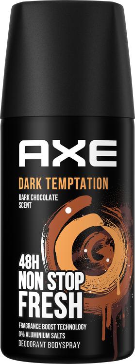 Oplev Axe Dark Temptation deodorantspray - den perfekte kropsspray til mænd, der ved, hvad de vil have. Med en sensuel, forførende duft kombinerer den et maskulint krydderi med en forførende sødme. Duftprofilen åbner med intense noter af varm chokolade, rav og patchouli, mens frugtagtige accenter af kirsebær og cremet flødeskum er harmonisk integreret. Krydderier som peber og ingefær giver duften en spændende note, mens koriander, sort basilikum og salvie afrunder kompositionen. Denne deospray beskytter effektivt mod kropslugt uden aluminium og sikrer, at du forbliver frisk og attraktiv hele dagen. Nyd friheden til at leve livet fuldt ud uden hæmninger. Axe Dark Temptation er Axes mest succesfulde duft - lad dig forføre af denne eftertragtede aroma, og vis din egen personlige tiltrækningskraft.