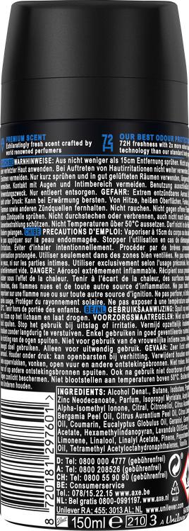 Oplev Axe Premium Bodyspray Blue Lavender fra Axe Fine Fragrance Collection - en deodorant, der giver dig den luksus, som en højkvalitetsparfume giver i hverdagen. Med en unik duft, der er kendetegnet ved det harmoniske samspil mellem iskold lavendel, forfriskende mynte og varm rav, udfolder der sig en forførende aroma, der afrundes perfekt af de kontrasterende noter af cedertræ, vaniljecreme og sensuel tonkabønne. Denne herredeodorant beskytter effektivt mod kropslugt i op til 72 timer, så du kan føle dig frisk og selvsikker hele dagen. Den er formuleret uden aluminiumssalte, giver skånsom beskyttelse og er ideel til daglig brug. Axe er også engageret i bæredygtighed: aluminiumsdåsen kan genbruges i det uendelige og bidrager til en grønnere fremtid. Forkæl dig selv med luksusen ved en førsteklasses duft, og oplev, hvordan det er at dufte uimodståeligt hver dag.