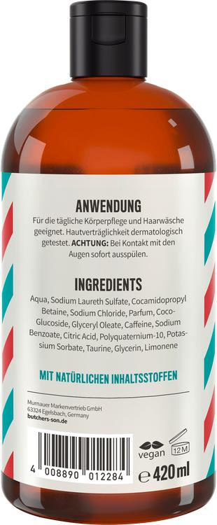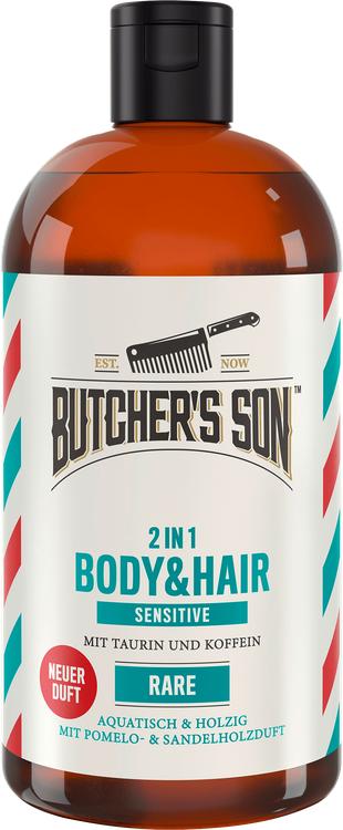 Butcher's Son 2in1 Body & Hair Rare Sensitive er udviklet til rigtige mænd og tilbyder en ideel kombination af brusebad og shampoo. Denne innovative shower gel renser blidt følsom mandehud uden at udtørre den. Beriget med taurin og koffein revitaliserer den ikke kun hovedbunden, men sikrer også skinnende hår og forbedret redbarhed. Den langvarige, uimodståelige duft kombinerer akvatiske og træagtige noter af pomelo, sandeltræ og moskus for en forfriskende duftoplevelse. Uanset om det er i morgenbadet eller efter sport, forvandler dette produkt den daglige pleje til en luksuriøs oplevelse.