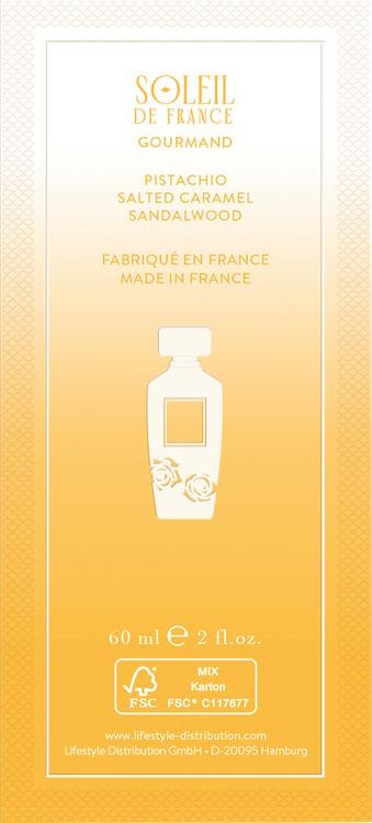 Oplev CÂLINE Soleil de France eau de parfum, som indfanger den strålende varme fra den franske sommersol i en duft. Med sine lækre gourmandnoter af pistacie og mandel kombinerer denne sofistikerede duft den søde forførelse af saltet karamel med den bløde elegance af cremet sandeltræ. Denne duftkomposition udstråler den franske rivieras sommerlige lethed og glamourøse flair og transporterer dig til den livlige atmosfære i Paris. Denne duft er ideel til de varmere måneder og er indbegrebet af feminin elegance og livsglæde.