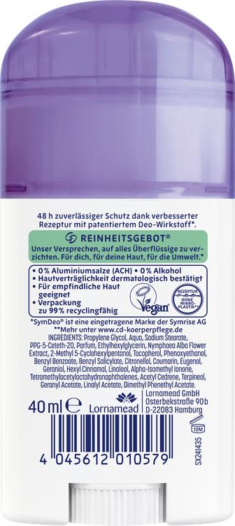 CD Deo Care Stick Water Lily giver dig skånsom og pålidelig deodorantbeskyttelse i op til 24 timer. Beriget med naturligt nøkkeroseekstrakt får denne stick din hud til at føles forfrisket og efterlader dine armhuler velplejede. Den er formuleret til at være særlig mild, aluminiumsfri og derfor ideel til følsom hud. Deodorantstiften er dermatologisk testet og kan endda bruges efter barbering uden at efterlade irriterende rester. Nyd den langvarige beskyttelse og beroligende pleje af din hud.