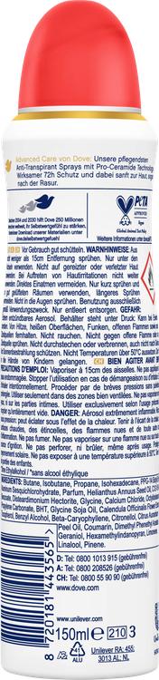 Oplev Dove Advanced Care antiperspirant, som er specielt udviklet til kvinder, der sætter pris på pålidelig beskyttelse og hudpleje. Med sin uimodståelige duft af frugtagtig fersken og forfriskende hvide blomster giver denne deodorant en langvarig følelse af friskhed i op til 72 timer. Den innovative Skin Hydration Technology plejer den følsomme hud under armene og understøtter dens regenerering, så du kan føle dig frisk og veltilpas, selv efter barbering. Den alkoholfrie formel beskytter ikke kun mod sved, men sikrer også glatte og velplejede armhuler. Dove er også PETA-vegan godkendt og tester ikke på dyr i hele verden. Stol på Dove for at slippe din individuelle skønhed løs.