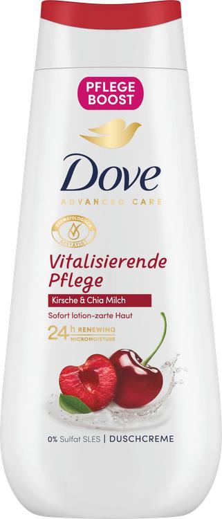 Dove Advanced Care Shower Cream Vitalizing Care Cherry & Chia Milk tilbyder en unik kombination af blid rensning og intensiv fugtgivende pleje af huden. Denne cremede shower cream indeholder millioner af bittesmå MicroMoisture-dråber, der hjælper med at skabe en silkeblød hudfornemmelse. Den særlige formel, som kombinerer plantebaserede fugtgivere og milde rensende stoffer af naturlig oprindelse, renser skånsomt huden og bevarer dens naturlige fugtighed. Den forførende duft af kirsebær og chia-mælk giver en sensuel bruseoplevelse og forkæler sanserne. Med effekten af 0 % sulfat SLES giver brusecremen øjeblikkelig, lotionblød hud i 24 timer. Efter bare én påføring føles huden behagelig og smidig, og den er ideel til tør hud. Emballagen er fremstillet af mindst 70 % genbrugsmateriale, og Dove er stolt af at være cruelty-free, hvilket bekræftes af det PETA-certificerede logo. Opdag den perfekte pleje til din hud, og nyd en forkælende bruseoplevelse med Dove.