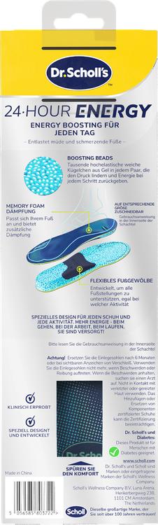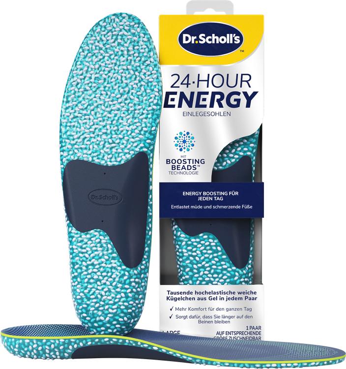 Dr. Scholls 24 Hour Energy-indlægssåler er den perfekte løsning til alle, der er aktive hele dagen og ønsker maksimal komfort. Disse innovative indlægssåler kan tilpasses, så de passer til din fodstørrelse (størrelse 40-47,5). De er særligt velegnede til personer med diabetes eller følsomme fødder, da de giver skånsom støtte. Den avancerede Boosting Beads™-teknologi giver fremragende støddæmpning og lindrer trætte, ømme fødder. Med tusindvis af meget elastiske gelekugler giver de behagelig støtte hele dagen og øger dit energiniveau under enhver aktivitet.