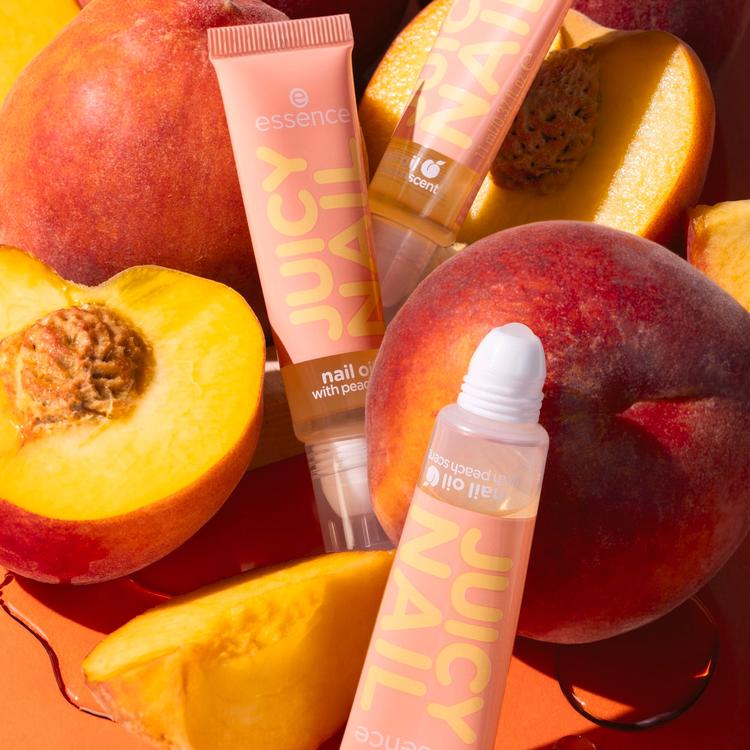 Essence JUICY NAIL Nail Oil Keep On Rollin giver skånsom pleje til negle og neglebånd, mens den forkæler dem med en frugtagtig duft. Den praktiske roll-on-applikator giver mulighed for nem og målrettet påføring, så negleolien glider ubesværet hen over neglebåndene uden behov for tryk. Den hurtigt absorberende formel fugter neglene og neglebåndene og efterlader dem med en glat fornemmelse. Med sin transparente konsistens giver den en velplejet glans og er ideel til hurtig pleje indimellem, uanset om du er hjemme eller på farten. Gør hver påføring til et lille plejehighlight, og nyd følelsen af smukke, sunde negle, når du vil.