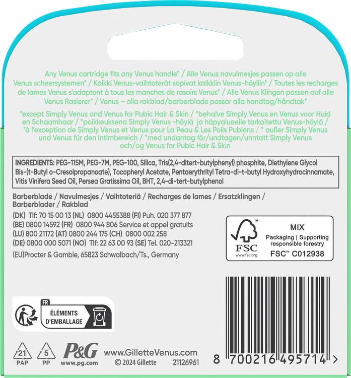 Gillette Venus Extra Smooth-barberbladene giver dig en forkælende barbering med glat og smidig hud. Med fem præcisionsslebne blade sikrer de en langvarig barbering, der er ubesværet selv på vanskelige områder af kroppen. Den innovative SkinCushion-glidestrimmel, der er beriget med E-vitamin, beskytter din hud mod irritation og gør barberingen til en behagelig og skånsom oplevelse. Bladene er kompatible med alle Venus-håndstykker, med undtagelse af Simply Venus og Venus-modellerne til intime områder. Desuden sikrer brusebadsholderen, at din barbermaskine forbliver ren og tør mellem brug. Forkæl din hud, og oplev kvaliteten af Gillette Venus-produkter, der er specielt udviklet til din krops behov.
