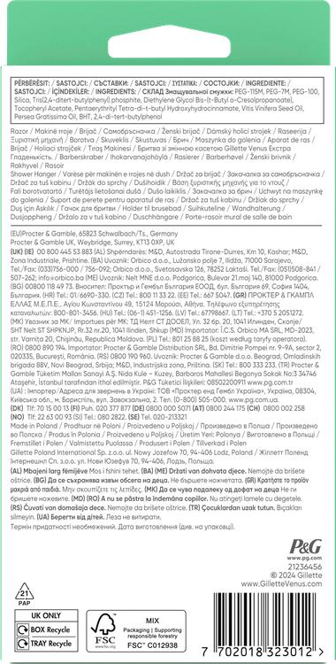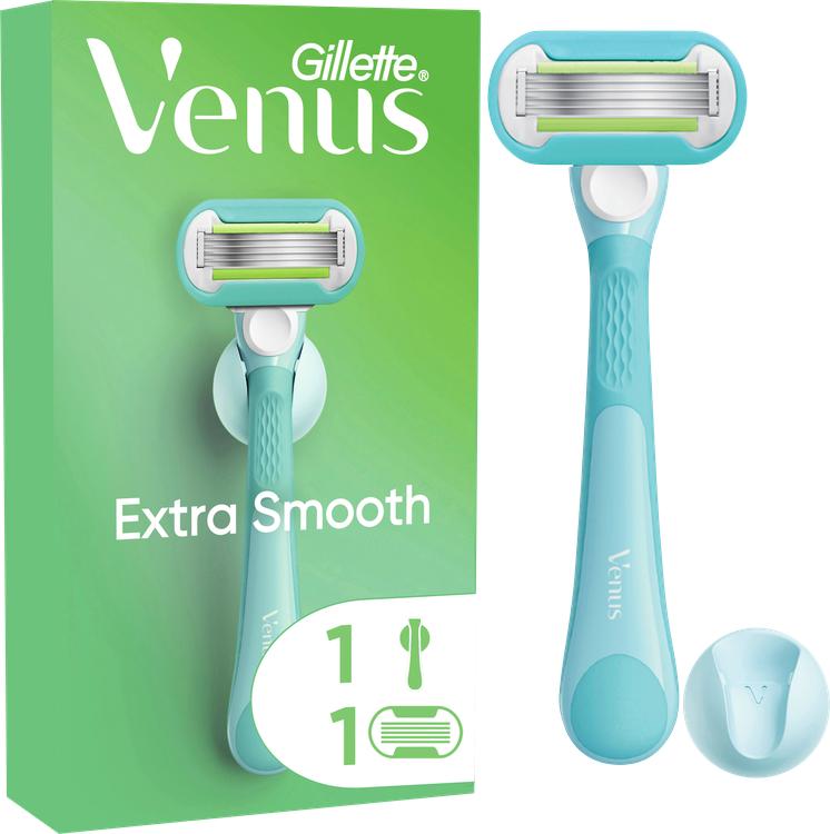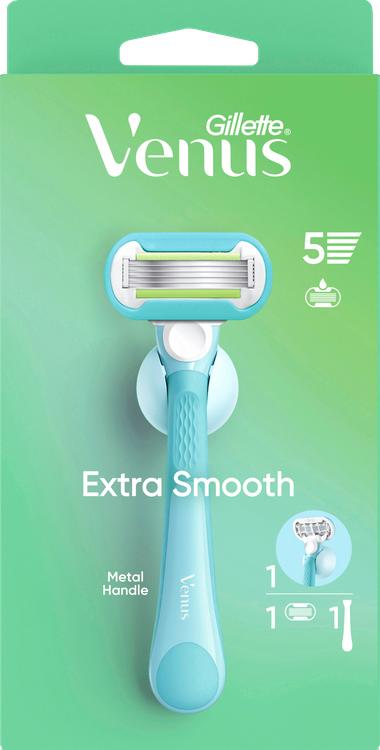 Oplev en glat barbering med Gillette Venus Extra Smooth-barbermaskine. Udstyret med fem blade af høj kvalitet forvandler den den daglige barberingsrutine til en ubesværet fornøjelse og sikrer en glat og tæt barbering i et enkelt strøg. Den integrerede SkinCushion-glidestrimmel beskytter din hud mod irritation og giver en behagelig barberingsoplevelse. Takket være det ergonomiske, skridsikre håndstykke ligger barbermaskinen sikkert i hånden og garanterer præcis brug. Den praktiske bruseholder sikrer, at barbermaskinen forbliver ren og tør mellem brug. Med langtidsholdbare blade, der holder i op til 30 dage, er Gillette Venus Extra Smooth-barbermaskinen din ideelle ledsager til et velplejet udseende og en frisk følelse, der varer hele dagen. Oplev Gillette Venus-serien, og forkæl din hud med en række plejemuligheder, der er designet specielt til din krop og dit hår.