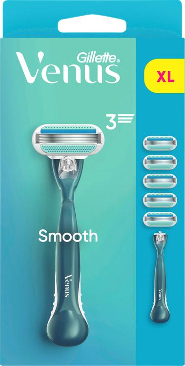Oplev Gillette Venus Smooth-barbermaskinen, det ideelle værktøj til en glat og tæt barbering. Udstyret med tre ultraskarpe blade giver denne barbermaskine et fejlfrit resultat på kortest mulig tid. Den innovative SkinCushion-glidestrimmel minimerer barberingsirritation og får huden til at føles behagelig under brug. Det fleksible, drejelige hoved tilpasser sig ubesværet din krops konturer og når nemt selv svært tilgængelige områder. Det skridsikre håndstykke sikrer optimal kontrol og komfort, så du kan håndtere den med præcision. Forkæl din følsomme hud med denne sofistikerede barbermaskine, og oplev hele Gillette Venus-serien for flere forkælelsesmuligheder.