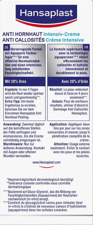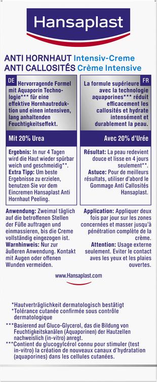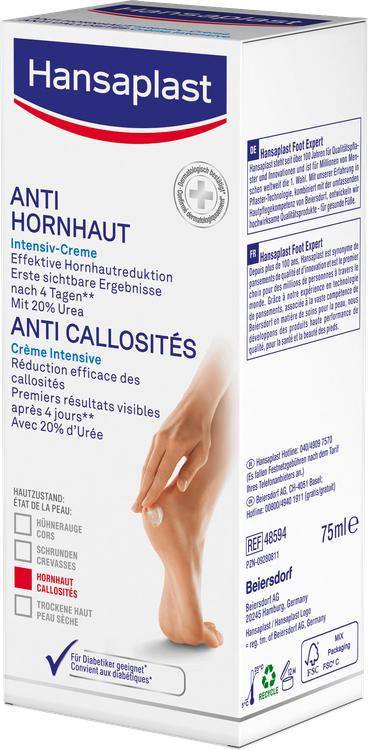 Hansaplast Foot Cream Anti Callus Intensive Cream er specielt udviklet til at imødekomme behovene hos fødder med tendens til hård hud. Med en koncentreret formel, der indeholder 20 % urea, bekæmper den effektivt hård hud og fugter intensivt meget tør hud. Urea, som er en naturlig bestanddel af huden, forbedrer fugtbindingen og understøtter hudens beskyttende funktion. De første synlige resultater kan ses efter bare fire dage, og cremen hjælper med at gøre fødderne mærkbart blødere og glattere. Den er også velegnet til diabetikere og giver en langvarig effekt for sunde, velplejede fødder.