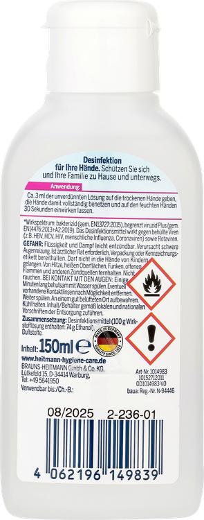 Beskyt dig selv og din familie mod skadelige bakterier og vira med Impresan håndsprit. Dette effektive desinfektionsmiddel er ideelt til brug i hjemmet og på farten. Det desinficerer dine hænder på bare 30 sekunder og fjerner over 99,9 % af specifikke bakterier og vira. Den er dermatologisk testet for hudkompatibilitet, hvilket gør den velegnet til følsom hud. Desuden kræver desinfektionsmidlet ikke vand og efterlader en frisk duft, så du kan stole på optimal hygiejne når som helst og hvor som helst.