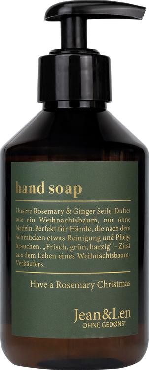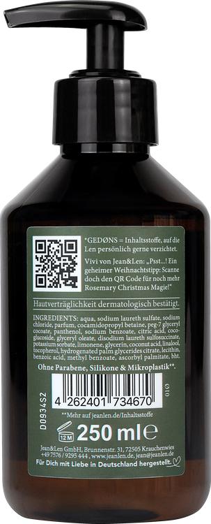 Jean&Len Rosemary Ginger flydende sæbe kombinerer funktionalitet og en forfriskende duftoplevelse i et praktisk format. Denne alsidige flydende sæbe er ikke kun velegnet til skånsom rensning af stressede hænder, men kan også bruges som shower gel. Den nærende formel indeholder panthenol og fugtgivende ingredienser, som beskytter og plejer huden under vask. Den friske, grønne duft af rosmarin og ingefær renser sindet og giver ny energi. Dette produkt er ideelt til genopfyldning med praktiske genopfyldningsformater, bidrager til bæredygtighed og er en fremragende gave eller souvenir.