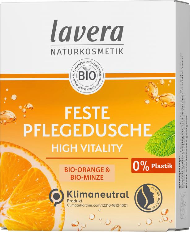 Oplev den forfriskende verden af Lavera Solid Shower High Vitality, som tilbyder naturlig kropsrensning i fast form. Denne veganske formel kombinerer de forfriskende kræfter fra økologisk appelsin og økologisk mynte og giver en behagelig skummende oplevelse med en beroligende duft. Den blide rensning beskytter huden mod udtørring og efterlader den med en følelse af næring under brug. Desuden er den faste shower gel op til tre gange mere effektiv end konventionel shower gel. Produktet er dermatologisk testet og certificeret, er underlagt strenge retningslinjer for naturkosmetik og indeholder ingen fast mikroplast eller kunstige farvestoffer og konserveringsmidler. Den miljøvenlige emballage er lavet af genanvendeligt papmateriale, som består af 100 % genbrugsfibre og dermed bidrager til beskyttelsen af vores miljø. Oplev den gode følelse af 100 % certificeret naturkosmetik - uden at gå på kompromis.