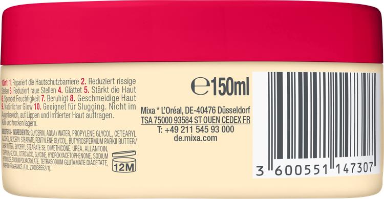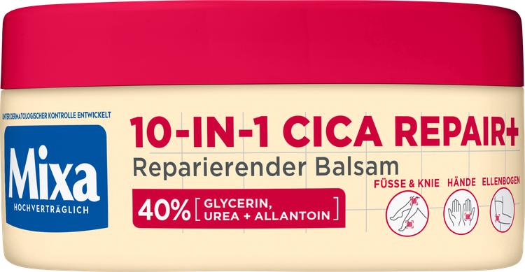Oplev Mixa Cica Repair+ Body Balm, en omfattende plejeformel, der er specielt udviklet til tør og ru hud. Med en unik blanding af 40 % glycerin, urea og allantoin giver denne reparerende balsam intensiv fugt og støtte til huden på særligt belastede områder som albuer, knæ, fødder og hænder. Den lette konsistens absorberes hurtigt uden at efterlade en fedtet fornemmelse og giver øjeblikkelig lindring og smidighed. Stol på Mixas gennemprøvede formel til at revitalisere og reparere din hud.