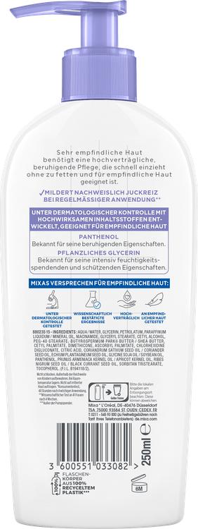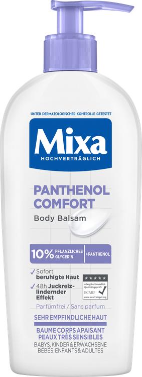 Mixa Panthenol Comfort Body Balm er det ideelle plejeprodukt til følsom hud og hud med tendens til neurodermatitis. Den er specielt udviklet til at lindre kløe og berolige irriteret hud. Med en unik formel, der er rig på regenererende panthenol og fugtgivende vegetabilsk glycerin, giver balsamen intensiv fugt og styrker hudens beskyttende barriere. Den yderst kompatible lotion er parfumefri og er endda velegnet til babyers følsomme hud. Takket være certificeringen fra European Center for Allergy Research Foundation kan du være sikker på, at din hud er optimalt beskyttet og plejet.