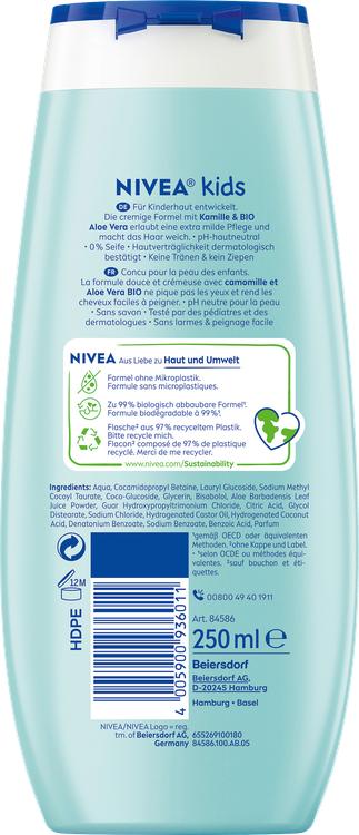 Oplev Nivea Kids 3in1 shower gel, shampoo og balsam med den fortryllende æbleduft, specielt udviklet til børns følsomme hud og sarte hår. Den ekstra milde formel med økologisk aloe vera og kamille renser blidt uden 0 % sæbe og sikrer en tårefri badeoplevelse. Den dermatologisk testede hudkompatibilitet garanterer, at dine små vil føle sig godt tilpas. Balsammen sørger også for, at håret bliver blødt, og at kæmning bliver en leg. Et ekstra plus: Formlen er 99 % biologisk nedbrydelig og indeholder ikke mikroplast, hvilket ikke kun er godt for huden, men også for miljøet. Flasken er fremstillet af 97 % genbrugsmateriale (undtagen hætten og etiketten), så emballagen bidrager også til miljøbeskyttelsen.