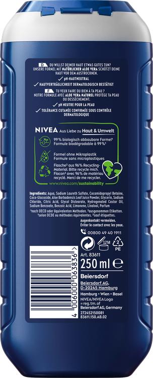 Nivea Men Shower Gel Protect & Care 3in1 er den ideelle løsning til omfattende rensning af krop, ansigt og hår. Beriget med naturlig aloe vera giver denne shower gel ikke kun en grundig rensning, men beskytter også huden mod udtørring og giver en intensiv følelse af pleje. Den er dermatologisk testet og pH-neutral, så den er skånsom mod huden og efterlader den med en behagelig følelse hele dagen. Den forfriskende duft afrunder plejeoplevelsen og efterlader huden med en frisk og ren fornemmelse. Forkæl dig selv og din hud med den pleje, den fortjener.