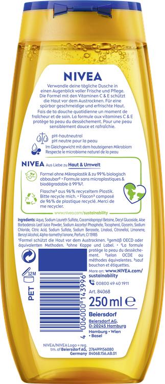 Oplev et forfriskende brusebad med Nivea Summer Happiness shower gel. Den unikke duft minder om solrige feriedage og gør dig i godt humør. Den innovative formel med aloe vera og C- og E-vitamin renser og plejer huden skånsomt, så den føles mærkbart blød og dufter frisk som solkysset hud. Denne shower gel fjerner ubesværet rester af saltvand, klor og solcreme og er pH-hudneutral, hvilket gør den til et ideelt valg til daglig rensning. Desuden er formlen 99 % bionedbrydelig og indeholder ikke mikroplast, hvilket gør den god for både huden og miljøet. Flasken er fremstillet af 96 % genbrugsmateriale og leveres uden hætte eller etiket, hvilket yderligere understreger dens bæredygtighed.