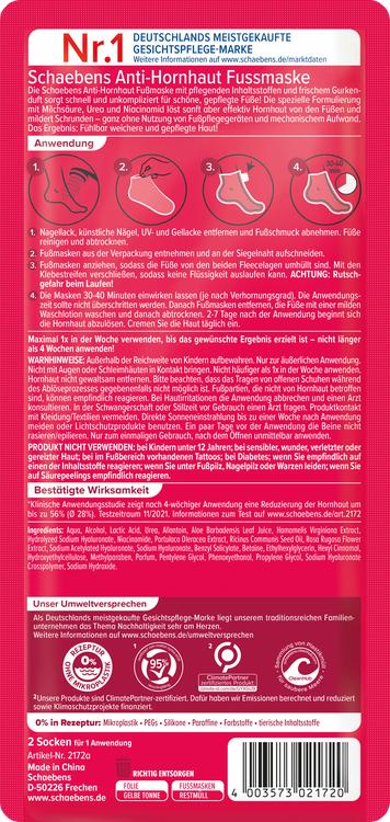 Schaebens anti-callus fodmaske er den ideelle løsning til tørre og sprukne fødder. Denne specialudviklede maske fjerner effektivt uønsket hård hud og blødgør sprukken hud, så dine fødder bliver bløde og smidige igen. Takket være den innovative formel med værdifulde ingredienser som mælkesyre, urea og niacinamid forbedres hudens fugtighed med op til 92 %. Masken er ekstremt nem at bruge og kræver ingen mekanisk indsats. Forkæl dig selv og dine fødder med denne beroligende pleje, og nyd følelsen af bløde, sunde fødder.