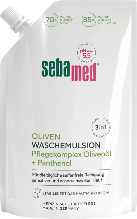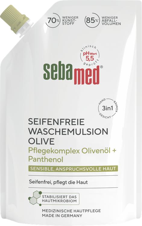 Sebamed Liquid Cleansing Emulsion with Olive tilbyder skånsom og effektiv rensning til følsom hud. Den sæbefrie formel kombinerer de nærende egenskaber fra olivenolie og panthenol med en særlig aktiv ingrediens fremstillet af plantestivelse for at modvirke udtørring, affedtning og irritation af huden. Med en pH-værdi på 5,5 understøtter emulsionen hudens naturlige beskyttelseslag og hjælper med at øge hudens modstandskraft. Uanset om det er til daglig vask eller til særlige hudkrav - denne vaskeemulsion efterlader huden opfrisket og velplejet. Særligt velegnet til følsomme og krævende hudtyper.
