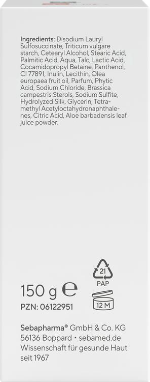 Den sæbefri vask med olivenolie fra sebamed giver en særlig mild rensning, specielt udviklet til følsom og krævende hud. Med et omhyggeligt afbalanceret plejekompleks af olivenolie af høj kvalitet, silkeprotein og phytosteroler sikrer den grundig rensning og en behagelig følelse af friskhed. De værdifulde ingredienser som aloe vera understøtter hudens fugtbalance og hjælper med at berolige den. pH-værdien på 5,5 fremmer hudens naturlige beskyttelsesfunktioner og beskytter den mod skadelige ydre påvirkninger. Denne vask er ideel til daglig brug, især til følsom hud eller hudlidelser, og tilbyder et skånsomt alternativ uden irritation eller udtørring.