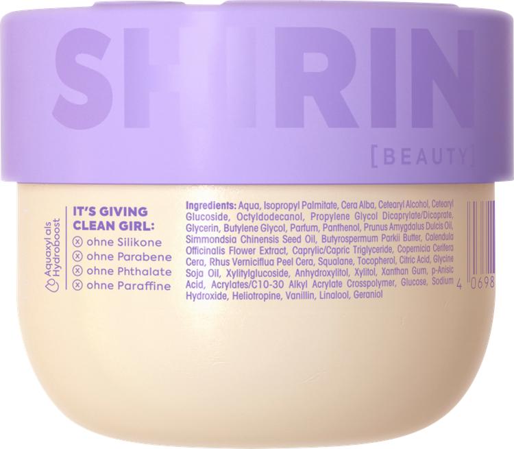 Oplev den intensive pleje fra Shirin Beauty Creamy Blueberry Caramel Bliss body butter. Denne rige body butter er specielt udviklet til at imødekomme tør huds behov og kombinerer en afbalanceret blanding af olier af høj kvalitet og innovative hydroaktive ingredienser. Hydroboosteren Aquaxyl sikrer, at hudens fugt bevares i lang tid. Samtidig nærer lipidkomplekset af sheasmør og E-vitamin huden i dybden og beskytter den mod skadelige frie radikaler. Beriget med panthenol og mandelolie udligner formlen ubalancer og efterlader huden smidig og fløjlsblød. Forkæl dig selv med den luksuriøse oplevelse af denne body butter, og forkæl din hud med intensiv fugt og pleje.