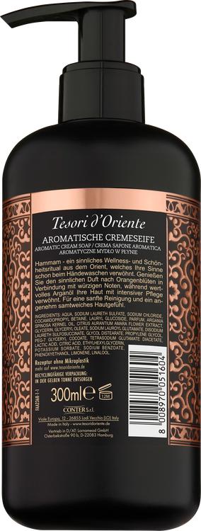 Oplev en luksuriøs plejeoplevelse med Tesori d'Oriente Hammam flydende sæbe, som bringer traditionerne fra orientalske wellness-ritualer ind i dit badeværelse. Beriget med dyrebar arganolie og en forførende duft af appelsinblomst forvandler denne sæbe simpel håndvask til en sensuel oplevelse. Den harmoniske kombination af blomster og krydrede noter forfører sanserne og minder om den afslappende atmosfære i arabiske termalbade. Denne blide flydende sæbe er ikke kun velegnet til hænderne, men plejer også ansigt og krop, efterlader huden blød og silkeagtig og sikrer en langvarig, behagelig følelse på huden.