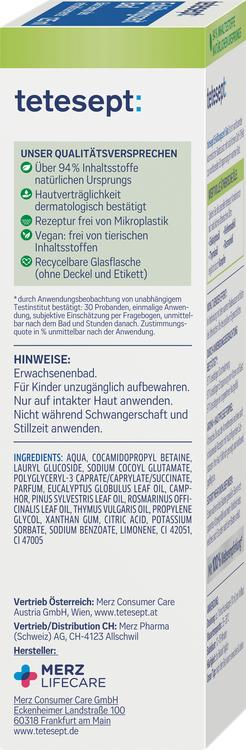 Tetesept Cold Time Bath er et beroligende badetilskud, der giver afslappende stunder i badet. Den særlige formel kombinerer naturlige æteriske olier som eukalyptusolie, fyrrenåleolie, timianolie og rosmarinolie med kamfer for at skabe en beroligende badeoplevelse. Den hudplejende formulering indeholder ingredienser af naturlig oprindelse og er fri for mikroplast. Læg hverdagens stress bag dig, og nyd den beroligende effekt af Cold Time Bath, som hjælper dig med at slappe af og genoplade dine batterier.