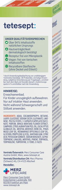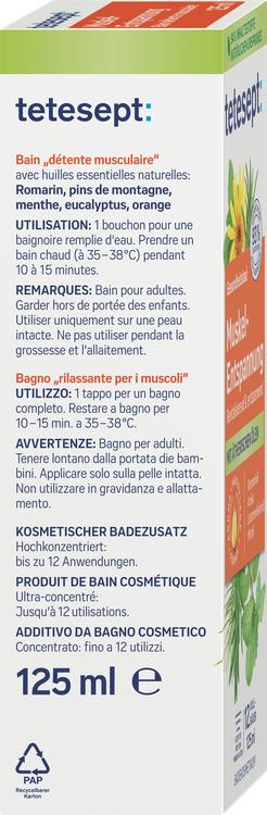 Tetesept Health Bath Muscle Relaxation er det ideelle badetilskud til alle, der ønsker at slappe af og revitalisere efter fysisk aktivitet. Med en nøje afbalanceret blanding af naturlige æteriske olier, herunder rosmarin-, citron-, mynte-, nellike-, eukalyptus- og appelsinolie, giver dette bad en beroligende oplevelse. Forbedret med kamfer og salicylat forvandles dit bad til en oase af afslapning. Den dermatologisk bekræftede hudkompatibilitet og den veganske formel, som er fri for mikroplast, kerosener, silikoner og mineralolier, sikrer, at du kan føle dig helt tryg. Forkæl dig selv med en velfortjent pause efter en anstrengende træning, og nyd den revitaliserende effekt af dette særlige badetilskud.