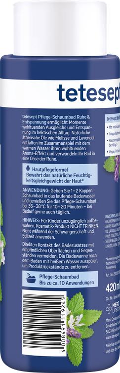 Oplev en pause fra den hektiske hverdag med Tetesept calm & relaxation bubble bath. Dette nærende skumbad forvandler dit badeværelse til en afslappende oase af ro. De naturlige æteriske olier fra citronmelisse og lavendel udfolder deres beroligende aromaeffekt ved kontakt med varmt vand og giver en følelse af dyb afslapning. Det langtidsholdbare, milde skum omslutter din hud og giver dig en beroligende følelse af pleje. Den veganske tekstur garanterer, at produktet er fri for animalske ingredienser og derfor også er egnet til bevidste brugere. Forkæl dig selv med øjeblikke af balance og afslapning med dette unikke skumbad.