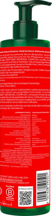 Oplev den innovative Weleda Body Lotion Firming Serum, som kombinerer den intensive pleje fra et serum med den lette konsistens fra en lotion. Denne hurtigt absorberende formel indeholder det unikke PEPTIDE+ RENEWAL COMPLEX, som består af økologisk granatæblekerneolie af høj kvalitet og maca-peptider. Lotionen opstrammer og regenererer krævende hud, understøtter cellefornyelsen og har vist sig at forbedre hudens elasticitet. Den har også en antioxidant effekt og efterlader huden smidig. Ideel til alle, der ønsker en effektiv løsning til en fastere hud.