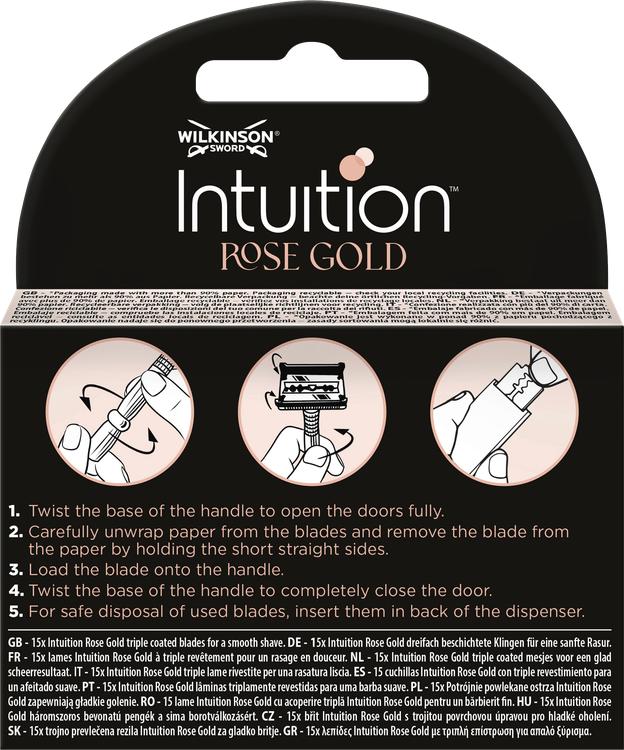 Wilkinson Sword Intuition Rose Gold-barberbladene giver dig en luksuriøs barberingsoplevelse, der er både skånsom og tæt. Takket være det innovative låsesystem forhindres hudirritation effektivt, mens de tredobbelt belagte blade sikrer en glat og behagelig barbering. Bladene er specielt designet til brug med Intuition Rose Gold safety razor og giver dig en miljøvenlig, plastikfri barbering. Sommerfugleåbningen gør det sikkert og nemt at skifte bladene, så du altid er perfekt forberedt.